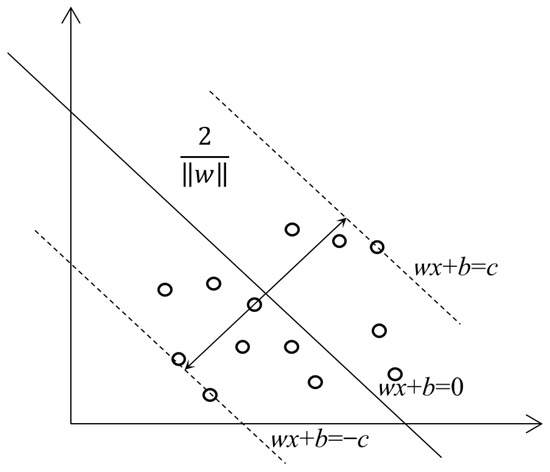 SVR [26] is a supervised learning algorithm. The regression model is obtained by using the kernel function to map the data into a high-dimensional space and finding the optimal hyperplane in that space to maximize the interval between the training data, as shown in Figure 2. Predicting the VIV response of the DDST bridge belongs to the typical regression problem, and the dataset is small, which meets the applicable conditions of SVR.