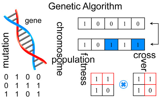 As shown in Figure 5, GA is an optimization algorithm based on the principle of biological evolution. It simulates the genetic and evolutionary processes in nature and gradually searches and optimizes the solution of the problem by performing operations such as selection, crossover, and mutation on the individuals in the solution space [30,31].