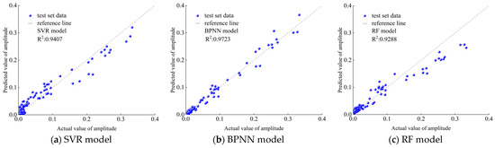 Prediction results of the three machine learning models (amplitude prediction).