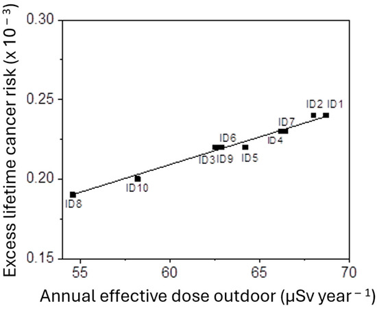 - A linear relationship between ELCR and AEDEout was found, as clearly visible in Figure 3, according to the literature [53].