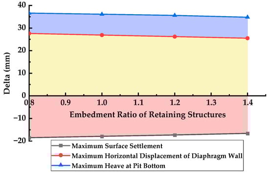 Influence of retaining structure embedment ratio on foundation pit deformation.
