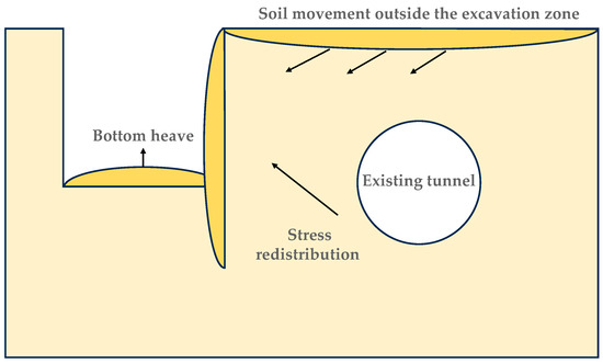 - Huang, X.; Schweiger, H.F.; Huang, H. Influence of Deep Excavations on Nearby Existing Tunnels. Int. J. Geomech. 2013, 13, 170–180. [Google Scholar] [CrossRef]