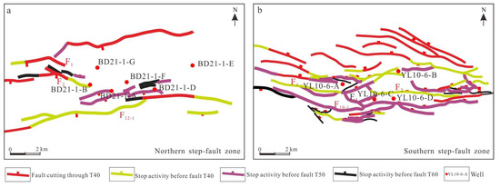 Relative activity period of faults in the south–north step-fault zone of the Baodao sag.
