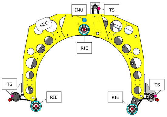 A rotary encoder and torque sensor are used to measure the angular velocity and torque at the shaft of the motors. The Maxon motors are installed with a EPOS4 motor drive (Maxon Group, Sachseln, Switzerland). This drive handles the feedback from the rotary encoder and torque sensors mounted inside each motor. The drive is also equipped with an internal torque controller, which uses a reference input torque received from the SBC.