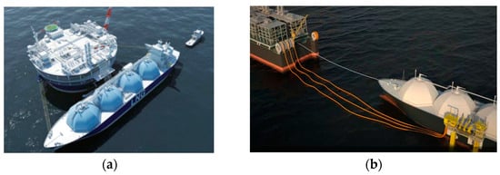 - Humphreys, V.; Jones, N. Offshore LNG Transfer, a Practical System Based on Proven Oil Transfer Principles. In Proceedings of the Annual Offshore Technology Conference, Houston, TX, USA, 3–6 May 2004; Volume 1. [Google Scholar]