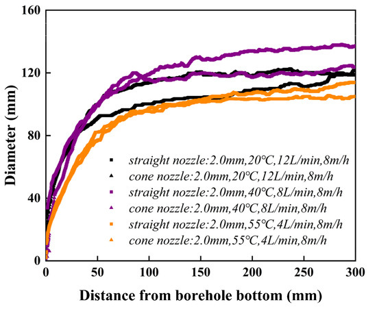 3.3. Influence of Drilling Parameters on Hot-Water Borehole Geometry
