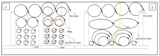 - Chatelain, M.; Proust, S. Open-channel flows through emergent rigid vegetation: Effects of bed roughness and shallowness on the flow structure and surface waves. Phys. Fluids 2021, 33, 106602. [Google Scholar] [CrossRef]