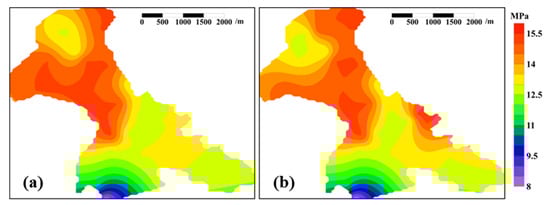 Images of formation pressure of B9 Reservoir before and after microbially activated water flooding field test. Note: (a) denotes before field test, (b) denotes after field test.