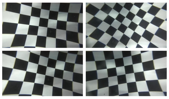 The calibration of a camera is mainly aimed at eliminating the impact of radial and tangential distortions of the lens on camera imaging. For nonlinear imaging models, the distortion coefficient, as an important component of camera internal parameters, can be calculated through camera calibration. This calculated distortion coefficient can be used to eliminate distortion in the original image. In this paper, we utilize the traditional camera calibration approach [20]: we first capture standard checkerboard patterns underwater at different positions and directions (shown in Figure 2), and then use the calibration toolbox provided in MATLAB to complete the camera calibration.