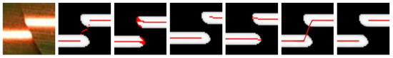 The running time of our proposed algorithm is about 4 times faster than the grayscale centroid method, 37 times faster than the Steger method, 23 times faster than the improved thinning method, and 30 times faster than the LBDM method. Although the running time of our proposed algorithm is not the shortest, it is almost the same as the running time of the unilateral tracking method. Our method yielded a fair combination of accuracy and efficiency; the difference in running time with the unilateral tracking method is significantly small. The best result is displayed in bold.