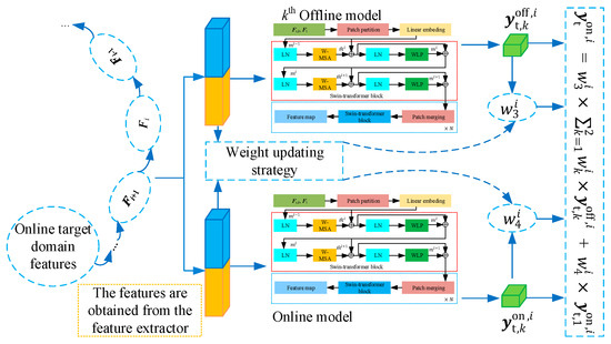 - A weight updating strategy is introduced to assign appropriate weights to both offline and online prediction methods based on the swin-transformer. This approach enhances the prediction performance and robustness of the model, ensuring that the model remains adaptable and accurate under varying operational conditions by effectively leveraging real-time and reliable online data.