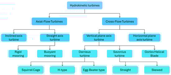 Classification of hydrokinetic turbines based on flow orientation and structural configuration.