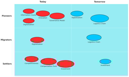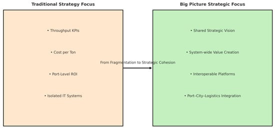 Moreover, digitalization efforts have often been undertaken in parallel rather than collaboratively, exacerbating fragmentation. This structural dispersion has a direct impact on the capacity of the system to attract non-traditional actors, innovate across sectors, or lead sustainable urban–port integration. It also weakens the ability of ports to function as coordinated nodes in a global smart logistics network [5]. Thus, while each port may pursue its own strategy, the absence of a shared strategic architecture significantly undermines the performance and transformative potential of the system as a whole.