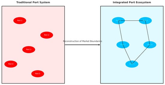 The dynamics of competition and cooperation among ports have long been discussed in the academic literature [15,32,33]. While competition is often seen as a driver of efficiency and innovation, excessive rivalry (especially within national systems) can lead to redundant infrastructure, disjointed investments, and diminished collective impact. The financial and managerial autonomy granted to each port authority often leads to internal competition, which undermines system-wide coordination [25]. This model, while aligned with neoliberal governance trends, has generated structural inefficiencies, particularly in the duplication of services and the absence of coordinated long-term planning. Scholars such as [4] have called for a shift toward “coopetition”, wherein ports compete externally while collaborating internally through shared platforms, policy alignment, and harmonized investment strategies [34].