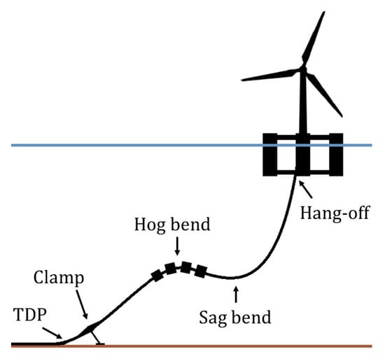 Figure 3 shows critical points of the power cable configuration to which special attention must be paid in the design. These points are the hang-off location, sag bend, hog bend, TDP, and, if applicable, the tether clamp close to the TDP with the respective bend stiffeners. Further, the attached buoyancy modules and their attachment points on the power cable need special consideration. These points are especially prone to exceeding the limits of certain constraints detailed in the following.
