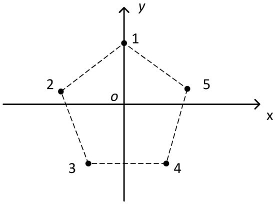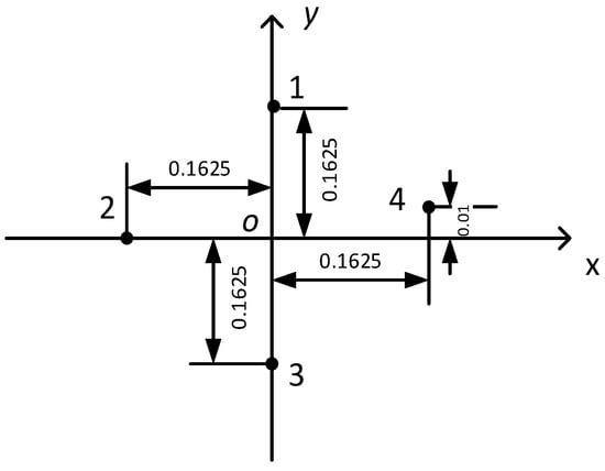 In this Equation, the coordinates of transducer elements can be predetermined through laser ranging measurements of the array configuration, thus serving as known parameters. Target coordinate determination requires establishing three equations, corresponding to three baselines. However, given the planar array geometry, Equation (4) introduces a geometric constraint that enables the reformulation of Equation (3) into Equation (5).