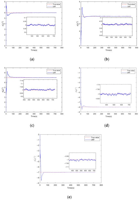 Set the installation errors angle as and the phase errors between each element as , in units of degrees, then the errors are estimated by UKF as shown in the figure below.
