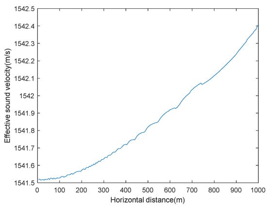 Graph of the relationship between effective sound velocity and horizontal distance.