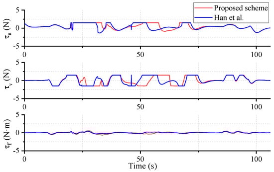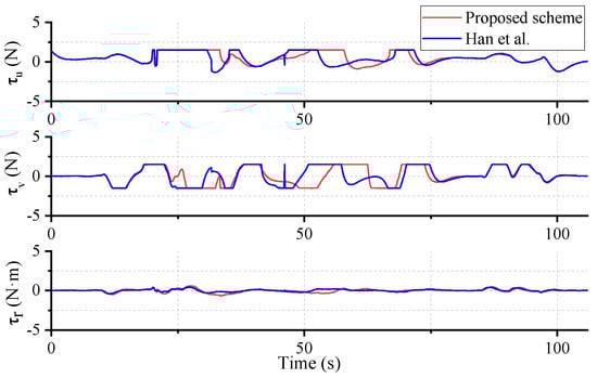 Control inputs under different schemes (heading on) [].