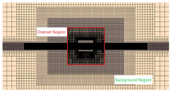 Grid overlapping was adopted to discretize the progressively complicated boundary shapes. It can divide the flow domain into two regions: one is the fixed background region encompassing the whole flow field, and the other one is the grid close to the research objective which moves with a buoy (as shown in Figure 11). The grids communicate through data transference by an interpolation procedure.