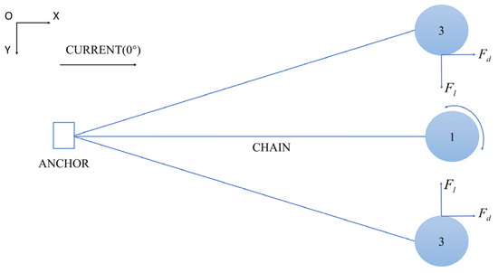 The origin of the global coordinate system was located at the position of the anchor. A right-handed coordinate system was defined with the positive x-axis pointing to the incoming current direction, the y-axis perpendicular to the incoming flow direction, and the z-axis orienting upward.