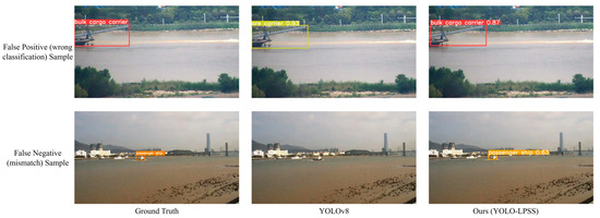 Figure 6 shows the comparison between the capabilities of YOLOv8 and YOLO-LPSS in detecting small ships. It can be seen that YOLO-LPSS has a higher recall and a better classification result for small ship detection tasks with a credible confidence score.