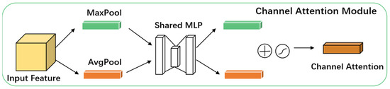 The CAM, as depicted in Figure 2, is designed to learn interdependencies among channels by computing importance weights for each channel, thereby adjusting the response of individual channels within the feature map. This mechanism allows for the prioritization of the most informative feature channels by the network, greatly improving feature representation. The implementation of CAM involves the following steps:
