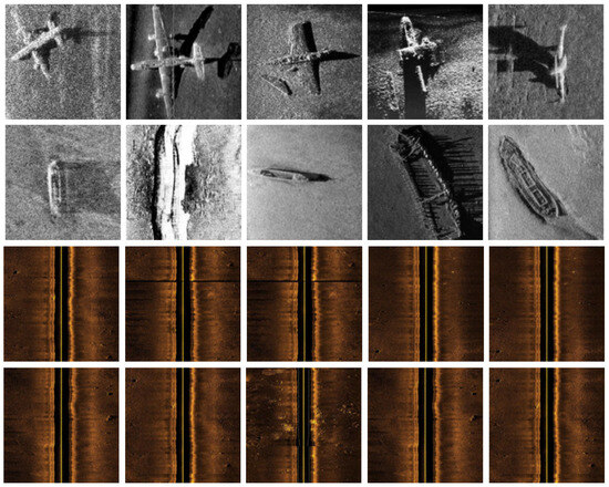 While deep learning approaches have been extensively used in target detection domains [10,11], most existing approaches are specifically designed for optical imagery, exhibiting limited generalization capabilities when applied to side-scan sonar datasets. Side-scan sonar imagery is characterized by less prominent features and sparse target distribution. In contrast, optical imaging systems, primarily designed for terrestrial feature recognition, exploit rich texture patterns and distinct contour information to achieve high detection accuracy. Although side-scan sonar provides high-resolution seafloor topography mapping, it differs significantly from optical imaging modalities in terms of technical characteristics [12]. The inherent limitations of side-scan sonar data further exacerbate detection challenges: (1) Acoustic backscatter signals from targets exhibit minimal contrast against background seabed sediments. (2) Surface texture details are poorly represented due to the nature of acoustic imaging mechanisms. (3) The sparse spatial distribution of underwater targets introduces additional identification complexity. These fundamental differences between side-scan sonar target detection tasks and optical image analysis significantly hinder the direct implementation of conventional deep learning-based detection frameworks in marine acoustic applications.