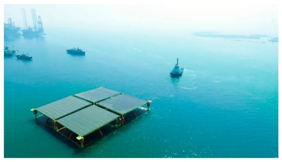 To ensure the stability of the energy supply and reduce the dependence on fossil fuels, the development and utilization of solar energy is particularly important. A photovoltaic is a power generation system that directly converts solar energy into electrical energy. The application and development of photovoltaic technology is an indispensable part of the energy revolution. Floating photovoltaics (FPVs) [1] are one of the most important parts of marine resource development and equipment utilization, which has a great development potential. According to the data in ‘Global Market Outlook for Solar Power/2023–2027’ by Solar Power Europe, the installed global photovoltaic capacity will reach 617 GW in 2027.