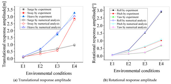 The numerical model of the FPV array in OrcaFlex is composed by Buoy and Line. The Buoy and the Line in OrcaFlex calculate the hydrodynamic load, which was the extended form of the Morison equation. This equation was originally proposed by Morison et al. [37] to calculate the wave load on a fixed vertical cylinder, which is suitable for structures with D/L < 0.2. In this study, the maximum drag width D of Buoy is 2.31 m, and the shortest wavelength is 24.95 m. Therefore, within the scope of this study, D/L = 0.09 < 0.2, which meets the theoretically applicable conditions.