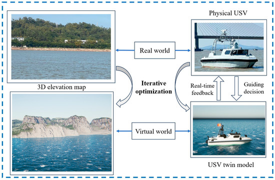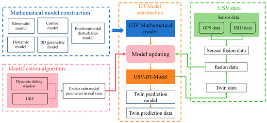 Beyond serving as a modeling tool for unmanned surface vessel (USV) navigation systems, digital twins also function as key components for real-time state estimation and short-term attitude prediction. In this study, the digital twin method is defined as an integrated technical framework that combines high-fidelity modeling, real-time sensing, data fusion, and predictive analytics. Specifically, real-time sensor data collected from the physical USV is transmitted to the digital twin model, which is iteratively optimized through system identification algorithms to achieve dynamic synchronization between the physical entity and its virtual representation. This process significantly enhances the model’s responsiveness and predictive capability, thereby providing robust technical support for USV navigation and control.