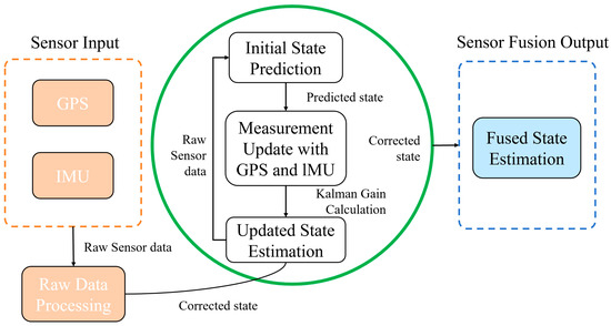 - Proposal of a Virtual–Real Synchronization Adjustment Mechanism based on the improved UKF algorithm: Multi-source sensor fusion data including GPS and IMU (Inertial Measurement Unit) data are combined with the improved UKF algorithm to perform real-time attitude estimation and model updates. A filter optimization strategy based on dynamic adjustment of the noise covariance matrix is proposed to enable dynamic updates of the digital twin model.