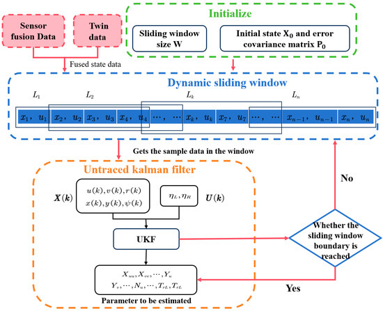- A dynamic sliding window-based Unscented Kalman Filter (DSW-UKF) algorithm was proposed. By adaptively adjusting the data weight window, it enables real-time estimation of hydrodynamic parameters. The algorithm dynamically corrects the digital twin model by incorporating feedback on discrepancies between the mechanistic model predictions and the actual USV motion, improving long-term prediction accuracy.