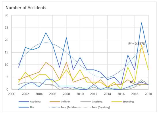 - Liu, K.; Yu, Q.; Yuan, Z.; Yang, Z.; Shu, Y. A systematic analysis for maritime accidents causation in Chinese coastal waters using machine learning approaches. Ocean. Coast. Manag. 2021, 213, 105859. [Google Scholar] [CrossRef]