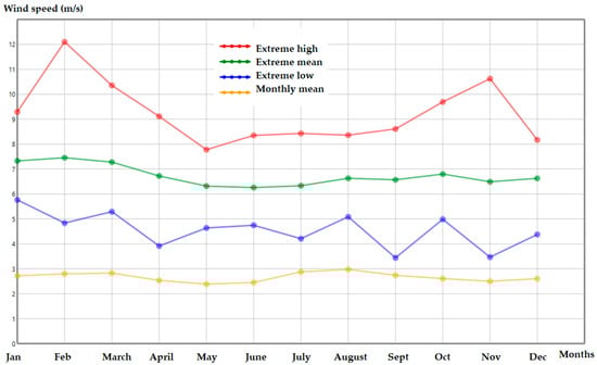 Long-term and extreme wind analyses are performed for meteorological stations and the European Centre for Medium-Range Weather Forecast Operation Archive (ECMWF-OA) data, which is provided at 0.1-degree horizontal grids with 6 h intervals for 2000–2024. Yearly and seasonal wind roses are obtained to demonstrate the directional distribution of winds. Maximum winds and their directions are explored, and the dominant wind directions for the bay are revealed. The Fisher Tippet Type 1 (Gumbel) Probability distribution of yearly maximum winds is obtained using the database of hourly wind data.