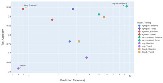 Decision trees are built in the training phase of the gradient-boosting models, considering the paths of the maximum reduction in residual errors. Random Forest trains multiple decision trees independently using bootstrap sampling to increase generalization. MLP employs backpropagation with gradient descent to revise neuron weights, making it computationally more time-consuming than decision tree models. Then, early stopping is employed to prevent overfitting and increase the computational performance of the model. Early stopping is applied in MLP by monitoring the validation loss across epochs to stop learning when the prediction reaches a steady state to prevent overfitting. In LightGBM and XGBoost, early stopping controls validation loss and terminates training when a specified number of iterations attain no progress. Random Forest does not demand early stopping due to its statistically independent multiple trees. Hence, tree-based models require fewer iterations than ANNs, which demand extensive computations for each training cycle.