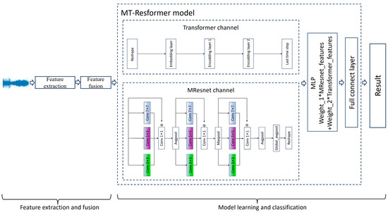 The MT-Resformer framework follows a structured design, consisting of audio preprocessing, feature extraction and fusion, as well as model training and classification stages.