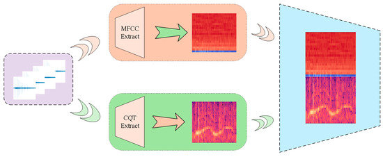 A Mel filter bank processes the spectrogram, and the resulting spectrum is converted into a Mel spectrogram through logarithmic scaling and integration. Finally, the discrete cosine transform (DCT) is used to derive the MFCC spectrogram. In contrast, the CQT spectrogram extraction begins with amplitude normalization during the preprocessing stage. The audio signal undergoes framing and windowing, followed by frequency component extraction using a nonlinear filter bank, with magnitudes computed. Logarithmic scaling is subsequently applied to generate the final CQT spectrogram. The fundamental formula of the CQT is as follows: