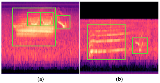 In marine mammal audio classification, spectrogram features exhibit multi-scale characteristics due to variations in both audio duration and frequency dynamics, as illustrated in Figure 7. Some recordings are relatively short, while others are longer, and the extent of frequency variation differs significantly across samples. Additionally, essential contextual information within audio signals may exist at different scales within the feature space. As shown in Figure 8, marine mammal vocalizations often contain multi-frequency aliasing and click sound. Furthermore, in fine-grained classification tasks, capturing information across multiple scales is critical for accurately interpreting the semantic content of vocalizations. Multi-scale feature extraction has been extensively validated and widely applied in computer vision [37]. Inspired by these advancements, integrating multi-scale feature extraction into marine mammal audio classification holds great potential for improving classification accuracy and model performance.