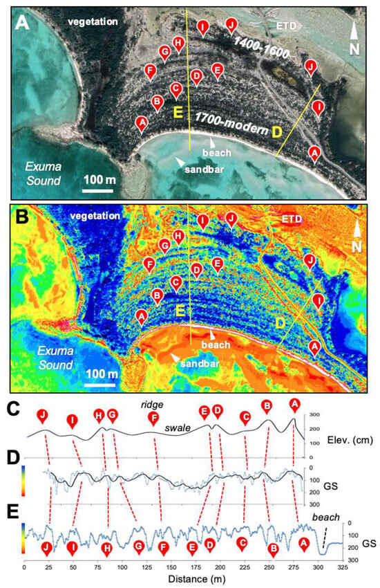 Buynevich, I.V.; Savarese, M.; Curran, H.A. Visualization of Coastal Carbonate Lithosomes: Color-Intensity Patterns and Georadar Imaging of a Semi-Lithified Strandplain, Eleuthera Island, The Bahamas. J. Mar. Sci. Eng. 2025, 13, 950. https://doi.org/10.3390/jmse13050950