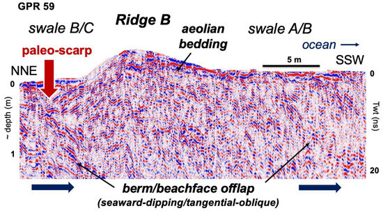 - Tamura, T. Beach ridges and prograded beach deposits as palaeoenvironment records. Earth-Sci. Rev. 2012, 114, 279–297. [Google Scholar] [CrossRef]