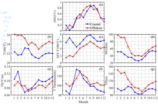 | Month | T100 | SST−T100 | MLD | T Thickness | TD | TS | ||||||