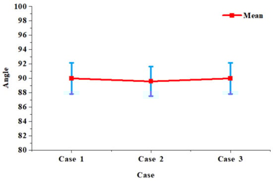 Water-exit angle error bar (Case 1–Case 3). Blue line denotes the standard deviation.