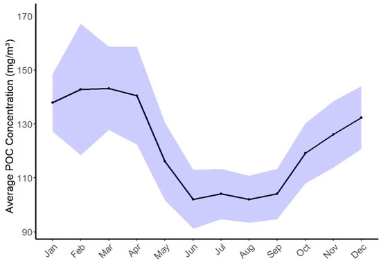 3.2. The Monthly Variation Characteristics of Particulate Organic Carbon Concentration