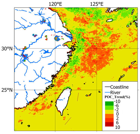 Trend of POC in the East China Sea, 2003–2022. The rate of change is the average of the annual rates of change from 2003 to 2023.