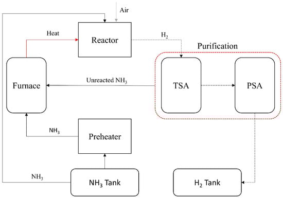 Basic schematic of NH3 decomposition unit (adapted from [15,41,42]).