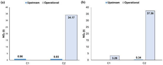 This study adopted a streamlined well-to-wake approach, focusing on the operational and production phase of the fuel pathways and excluding the energy consumption and carbon emissions associated with the manufacturing of FCs and battery systems. While this allows for a consistent and comparable analysis of fuel-related emissions, it introduces limitations, particularly for battery systems, which can involve significant embodied energy and associated emissions during production. The manufacturing phase for FCs and batteries can lead to a deviation of around 20–30% higher emissions compared to the operational phase alone [61]. Upstream and operational emissions were weighted equally, utilising emission coefficients sourced from the literature.