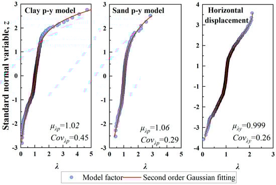 For the clay p-y curves, the model factor λ of the neural network model has a mean value = 1.02 and a coefficient of variation COVλ = 0.45. Compared to the clay p-y curves predicted by the API specification (μλ = 1.51, COVλ = 0.73), the mean model factor of the neural network model is closer to 1. Similarly, for the sand p-y curves, the neural network model yields a mean model factor μλ = 1.06 with a coefficient of variation COVλ = 0.29. In comparison, the API specification predicts a mean model factor of μλ =0.70 and COVλ =0.79 for sand p-y curves.