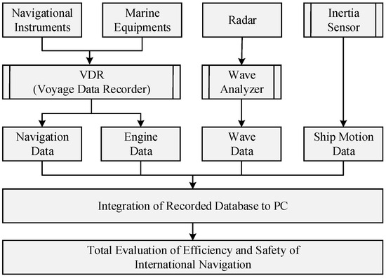 Data for this study were acquired through an integrated shipboard monitoring system, which incorporated a variety of sensors and instruments, as illustrated in Figure 1. The primary data acquisition systems included the following: