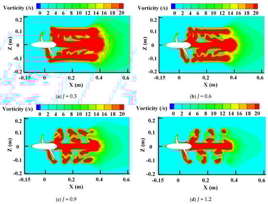 J. Under all operational conditions, sheet-like vortices of varying scales emerge downstream of the blade tips, with vorticity magnitude decaying as distance increases. This phenomenon is attributed to rotational effects within the slipstream region. The research results clearly reveal the influence law of the advance coefficient